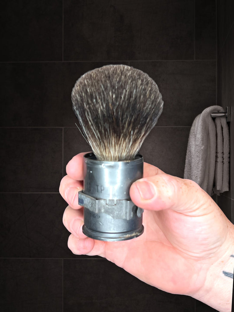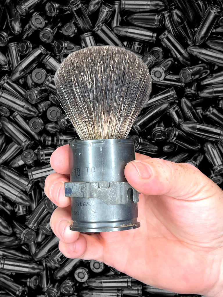 This one of a kind Shave Brush is made from a spent 40mm grenade shell casing. Each piece is cleaned and filled with resin so that each shave brush knot fits perfectly.