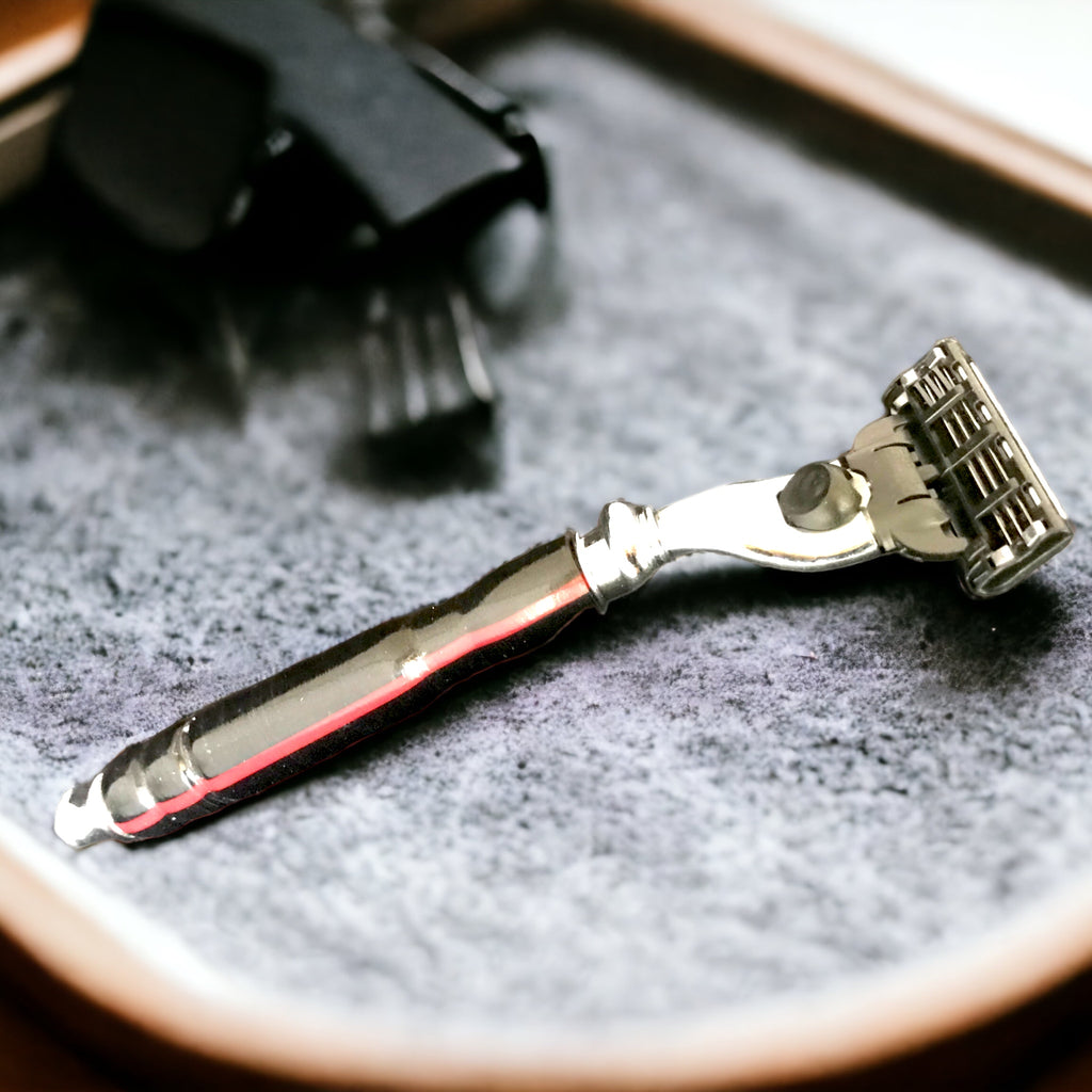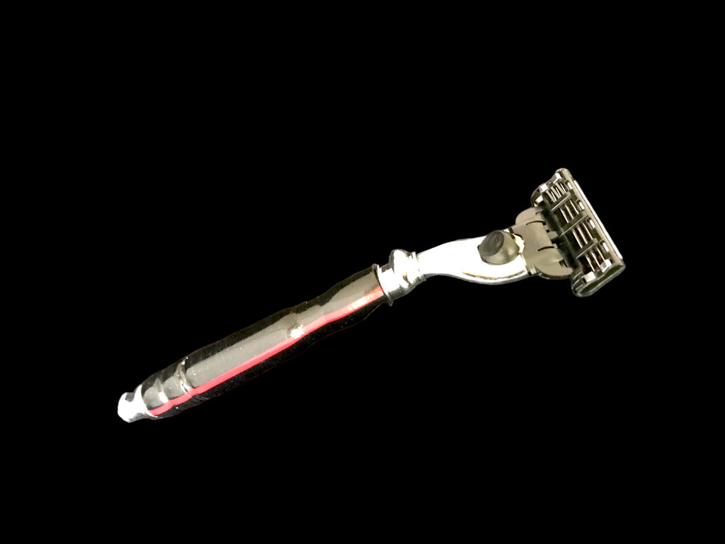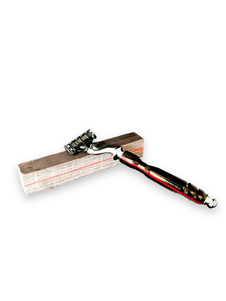 Hand Turned Acrylic Razor with Thin Red Line flag imbedded in acrylic.
